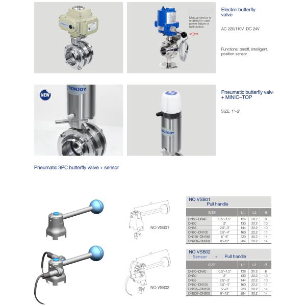 Donjoy sanitary butterfly valves are widely used to the chemical industry, petroleum, metallurgy, plumbing, food, bio-pharmaceutical and chemical industries;Donjoy stainless steel butterfly valve, sanitary fittings are high-quality products, can be used for dairy, pharmaceutical, beer, beverage, edible oil and other industries to meet their professional requirements.